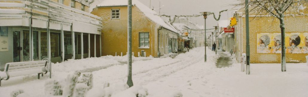 Billede B689 er fra albummet Ø39 og viser Sæby gågade i snevejr, 1995.